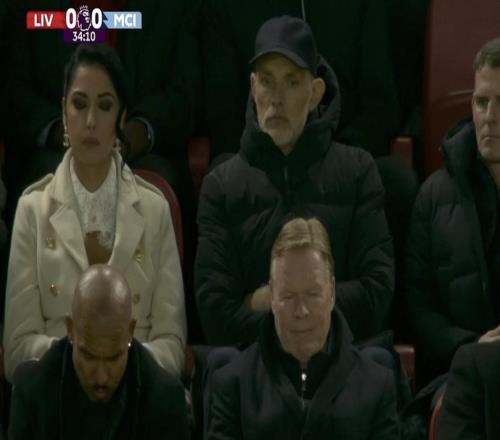 英超第25轮焦点大战,利物浦主场对阵曼城,英格兰队主帅图赫尔和荷兰队主帅罗纳德-科曼都在安菲尔德球场现场观...