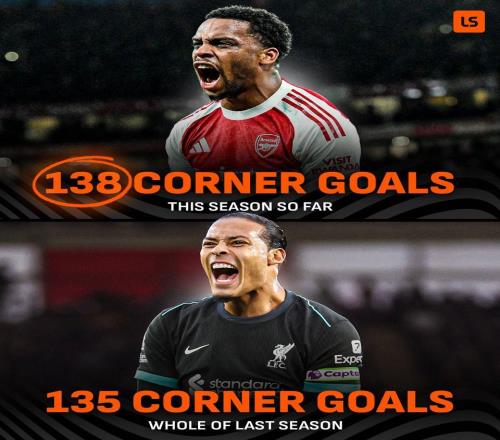 本赛季英超已经出现138粒角球进球,超上赛季38轮总和
