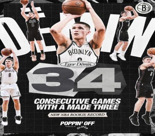 新秀历史第一人!杰明连续34场命中三分篮网灭爵士终结7连败
