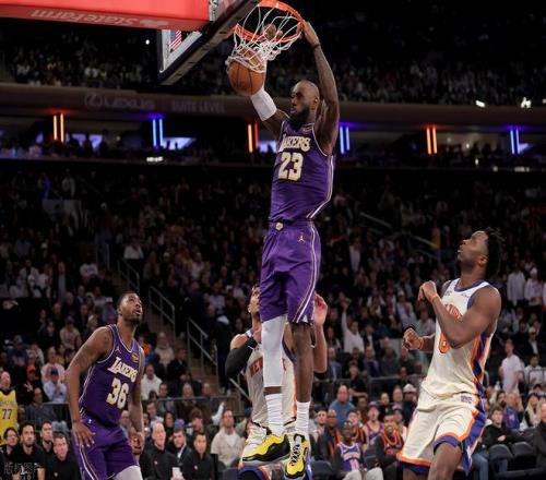 下半场比赛,布伦森急停跳投打进2分,哈特打进2+1,东契奇后仰命中中投,斯玛特助攻詹姆斯暴扣,阿努诺比飙进3分,拉拉维亚3分回敬一个,布里奇斯快速上篮打进,东契奇罚球拿2分,唐斯内线打出强硬的一面连拿6分,帮助尼克斯取得5分领先。东契奇抛投拿2分,哈特立刻命中3分回应,八村塁急停中投拿2分,唐斯强突艾顿再拿2分,海斯补篮、文森特命中3分,湖人取得2分领先。阿努诺比连续扣篮打进拿4分,沙梅特快攻上篮拿2分,詹姆斯骑马射箭打进,沙梅特快速回敬一个3分,布伦森也命中3分,詹姆斯3分打进止血,不过阿努诺比也打进3分,第三节打完湖人单节输了12分,82-90落后尼克斯。