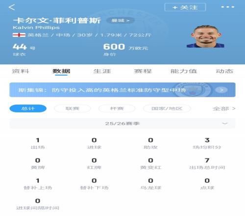 ·ÆÀûÆÕ˹£¬ÏÖÄê30Ë꣬Ӣ¸ñÀ¼Öг¡£¬±¾Èü¼¾½ö´ú±íÂü³Ç³öÕ½1³¡±ÈÈü£¬×ܼÆ7·ÖÖÓ£¬Ä¿Ç°µÂתÉí¼Û600ÍòÅ·¡£