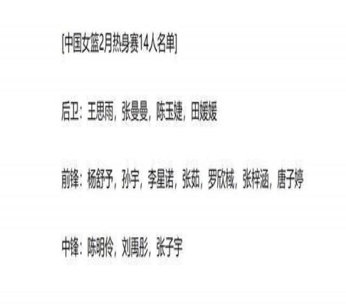 ±¾ÆÚ¼¯Ñµ´óÃûµ¥£¬ÖйúÅ®ÀºÑ¡ÔñÀîÔÂÈê¡¢ÕÅ×ÓÓîºÍ³ÂÃ÷ÁæÈý´óÖз棬ÒâÔÚͨ¹ýÈÈÉíÈü½øÐмìÑé¡£Èç¹ûµ½ÁË3ÔµÄÊÀ½ç±×ʸñÈü£¬º«Ðñ¡¢ÀîÔÂÈê»Ø¹é£¬ÄÇô¹úÄÚÖзæÑ¡Ôñ½«×÷³öµ÷Õû¡£Èç¹û²»Äܻع飬¿ÉÄÜÕâÈýÈ˾ÍÐèÒªÌôÆð´óÁºÁË¡£