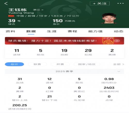 ÍõîÚ¶°ÏÖÄê19Ë꣬Éí¼Û150ÍòÅ·£¬ÉÏÈü¼¾´ú±íÕã½³öÕ½31³¡£¬¹±Ï×12Çò5Öú¹¥£¬ÊÇÖг¬µÄ±¾ÍÁÉäÊÖÍõ¡£Äê³õµÄU23ÑÇÖÞ±ÉÏ£¬ÍõîÚ¶°ËæÖйú¶Ó¶áµÃÑǾü£¬´´Ôì²ÎÈü×îºÃ³É¼¨¡£