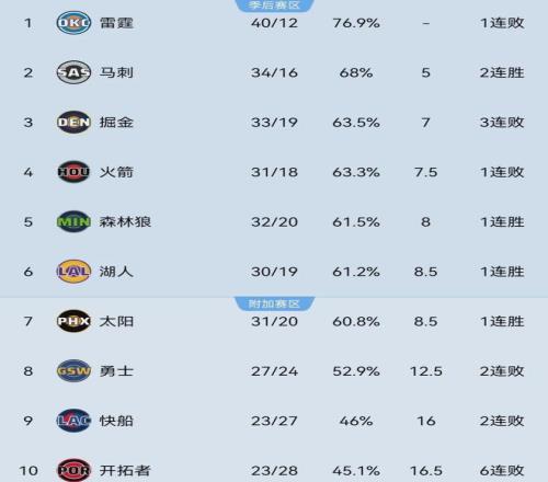 ĿǰΪֹ£¬»ð¼ýÒÔ31ʤ18¸ºÅÅÃûÎ÷²¿µÚËÄ£¬ÂäºóµÚÈýµÄ¾ò½ð0.5¸öʤ³¡£¬ÁìÏÈµÚÆßµÄÌ«Ñô1¸öʤ³¡£¬¾àÀëǰÈý¼×ºÍµô³ö¼¾ºóÈüÇøÓò¶¼ÊÇÒ»²½Ö®Ò£µÄÊ¡£