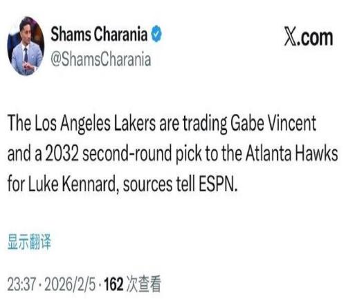 根据ESPN名记Shams报道,湖人与老鹰完成2换1交易,湖人将文森特和2032年次轮签送至老鹰,换回神射手肯纳德,有望提...