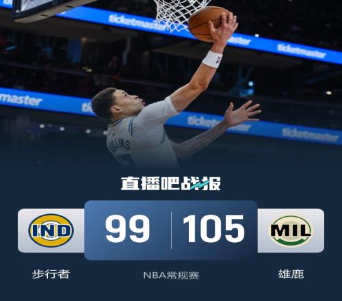 雄鹿胜步行者迎3连胜小波特23+7+8罗林斯22分内姆哈德22+8