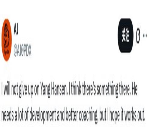 ÇòÃÔAJ·¢ÎÄдµÀ£º¡°ÎÒ¾ø²»»á·ÅÆú¶ÔÑîå«ÉµÄÆÚ´ý¡£ÎÒÏàÐÅËûÉíÉÏÊÇÓÐDZÁ¦µÄ¡£ËûȷʵÐèÒª´óÁ¿µÄ´òÄ¥ÌáÉý£¬Ò²ÐèÒª¸üÓÅÖʵÄÖ¸µ¼£¬µ«ÎÒÕæÐÄÏ£ÍûËûÄÜÔ½À´Ô½ºÃ¡£¡±