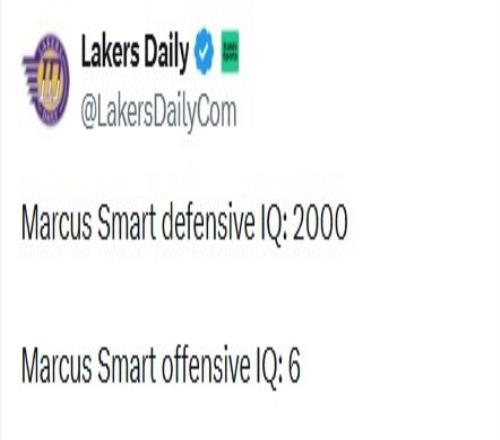 湖人自媒体Lakers Daily发文点评道:斯马特防守智商:2000;进攻智商:6。