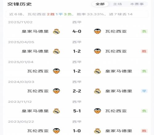 皇马暂以54分排名第二,落后榜首4分。瓦伦西亚23分暂排第十七。赛季首次交手中,皇马主场4-0大胜瓦伦西亚。