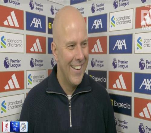 英超第25轮,利物浦主场1-2不敌曼城,赛后,红军主帅斯洛特接受了天空体育的采访。