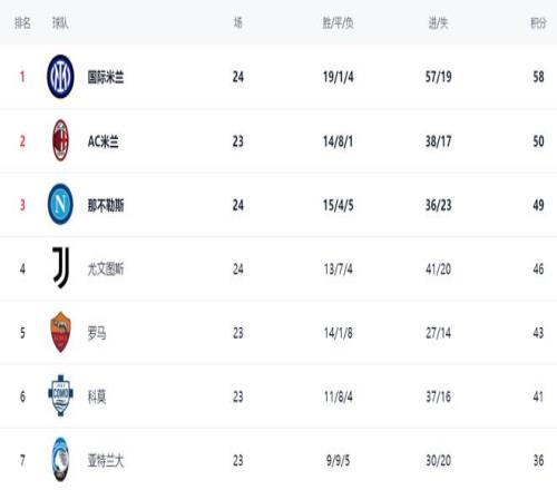 ÔÚ»ý·Ö°ñÉÏ£¬¹ú¼ÊÃ×À¼Ò»Ö¦¶ÀÐ㣬19ʤ1ƽ4¸ºµÄ³É¼¨·Ç³£ÁÁÑÛ£¬Äõ½58·Ö¸ß¾Ó°ñÊס£¶øACÃ×À¼Ö»Äõ½50·Ö¡£ËäÈ»ACÃ×À¼ÉÙÈüÒ»³¡£¬µ«Óë¹ú¼ÊÃ×À¼Õâô´óµÄ²î¾àÏëҪ׷ÉÏÈ¥ÄѶȼ«¸ß¡£ÄDz»ÀÕ˹ֻÄõ½49·Ö£¬ÅÅÃûµÚ3£¬Õù¹ÚÏ£Íû¼«ÆäÃìã¡£ÓÈÎÄͼ˹սƽºó£¬×Ü»ý·Ö´ïµ½46·Ö£¬ÅÅÃûµÚ4¡£ÂÞÂíÒÔ43·ÖÅÅÃûµÚ5¡£¿ÆÄªÔòÒÔ41·ÖÅÅÃûµÚ6¡£ÑÇÌØÀ¼´óÖ»Äõ½36·Ö£¬ÅÅÃûµÚ7¡£¶ø´íʧʤÀûµÄÀÆë°ÂÖ»Äõ½33·Ö£¬ÅÅÃûµÚ8¡£
