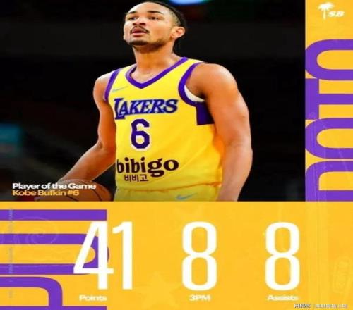 虽然科比巴夫金在NBA毫无建树,但他在发展联盟却是大杀四方!四天前,在科比巴夫金代表南湾湖人对阵首都城市Go-Go的比赛里,他全场出战40分钟,17投11中,三分13中8,7罚6中,狂砍41分2板8助2断。