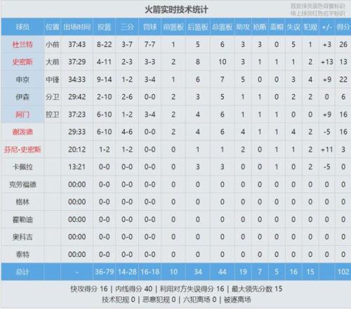 µÚËĽڿªÊ¼£¬Ð»ÆÃµÂ×éÖ¯½ø¹¥£¬·ÒÄá-Ê·ÃÜ˹ÌúÊ÷¿ª»¨£¬»ð¼ýÒ»²¨7-0À¿ªµ½Á½Î»Êý¡£¿ì´¬½ø¹¥¶Ïµç£¬×îºó1·Ö50ÃëлÆÃµÂµ×½ÇÈý·ÖɱËÀ±ÈÈü¡£È«³¡½áÊø£¬»ð¼ý102-95»÷°Ü¿ì´¬¡£Ã÷ÌìÉÏÎç9µã£¬Á½¶Ó±³¿¿±³ÔÙ´òÒ»³¡£¬ÒÀÈ»ÊÇ»ð¼ýÖ÷³¡¡£