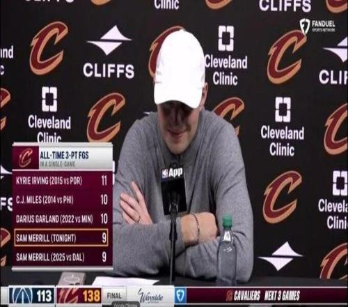 9个3分追平个人新高,也是骑士队史单场第4高三分命中纪录,仅次于欧文(11记)、CJ·迈尔斯和加兰(10记)。