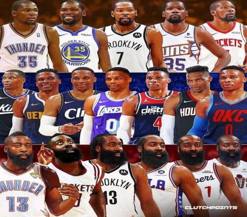 谁能想到,曾经的雷霆三少,如今成了联盟里的“球衣收藏家”。赛季至今杜兰特5队,哈登6队,威少7队,而且有很大概率,这个数字还会继续增加。