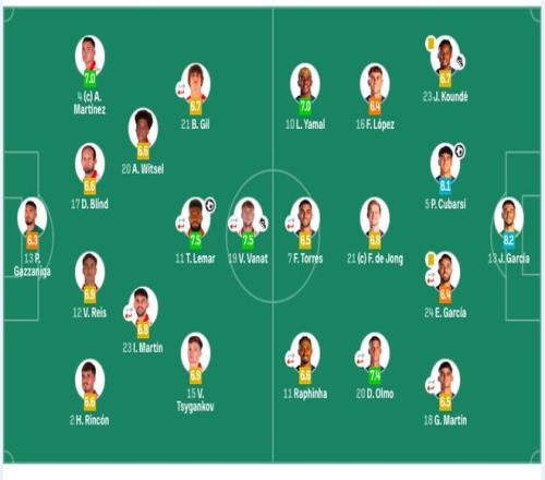 °ÍÈøÊ×·¢£º13-»ô°²¡¤¼ÓÎ÷ÑÇ¡¢5-¿â°ÍÎ÷¡¢18-ºÕÀ­µÂ¡¤Âí¶¡£¨63¡¯3-°Í¶ûµÂ£©¡¢23-¿×µÂ¡¢24-°£Àï¿Ë¡¤¼ÓÎ÷ÑÇ£¨73¡¯4-°¢ÀÍ»ô£©¡¢16-·Ñ¶ûÃ÷¡¢21-µÂÈÝ¡¢20-°Â¶ûĪ£¨83¡¯22-±´¶ûÄɶû£©¡¢7-·ÑÀ¼£¨73¡¯9-À³Íò£©¡¢10-ÑÇÂí¶û¡¢11-À­·ÆÄáÑÇ£¨63¡¯19-°ÍµÂ¼ª£©¡£