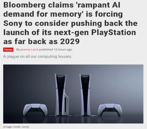 另据彭博社报道,由于人工智能对内存的旺盛需求,导致索尼的硬件也面临内存危机。索尼正在考虑将下一代PlayStation游戏机的发布时间推迟到2028年甚至2029年;