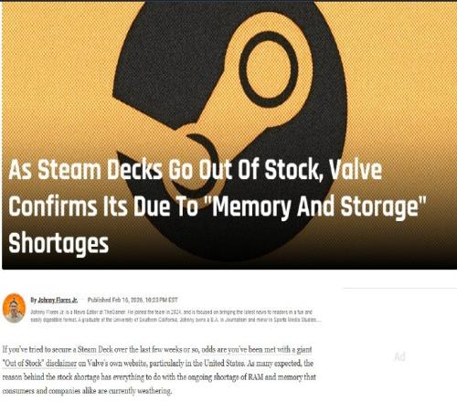 体育播报2月17日宣 据外媒报道,近日Valve官方在其Steam Deck商店页面上更新了一段说明,确认“由于内存和存储短缺,Steam Deck OLED 在某些地区可能会间歇性缺货” 。