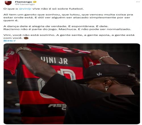弗拉门戈声援维尼修斯:种族主义不是足球的一部分,不能视为常态