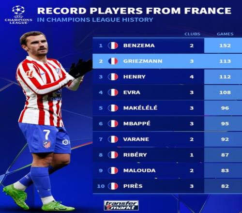 ÌåÓý²¥±¨2ÔÂ19ÈÕÐû Âí¾ºÔÚ±¾ÂÖÅ·¹Ú3-3սƽ²¼Â³ÈÕ£¬¸ñÁÐ×ÈÂüÔÚÅ·¹Ú³ö³¡ÊýÒ²³¬Ô½ºàÀû£¬³ÉΪ·¨¹úÇòÔ±ÀúÊ·µÚ¶þÈË¡£
