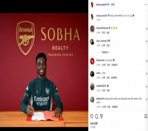 萨卡也通过社媒晒出自己的签字照,并配文:“完全忠于阿森纳