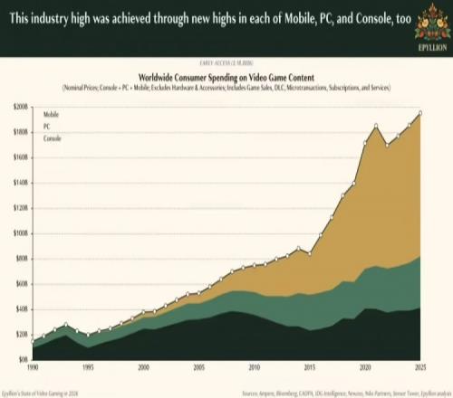 ÌåÓý²¥±¨2ÔÂ20ÈÕÐû Epyllion ¹«Ë¾µÄ Matthew Ball ·¢²¼¡¶2026 ÄêÊÓÆµÓÎÏ·ÏÖ×´±¨¸æ¡·£¬³Æ 2025 ÄêÈ«ÇòÓÎÏ·ÄÚÈÝÏúÊÛ¶î´ï1956 ÒÚÃÀÔª£¨×¢£ºÏÖ»ãÂÊÔ¼ºÏ 1.35 ÍòÒÚÔªÈËÃñ±Ò£©£¬Í¬±ÈÔö³¤ 5.3%£¬²»¹ý˽ÈËͶ×ÊÈ´±©µø 55%¡£