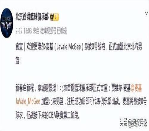 根据北京首钢官方社媒的公示,目前已经确定与前NBA冠军内线麦基达成一致,即将代表北京首钢征战下一个窗口期的比赛。