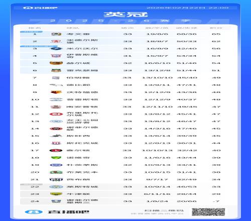 ÌåÓý²¥±¨02ÔÂ22ÈÕÐû Ó¢¹ÚµÚ33ÂÖ£¬Ð»·Æ¶ûµÂÐÇÆÚÈý1-2²»µÐл·Æ¶ûµÂÁª£¬33ÂÖ½ö»ý-7·Ö£¬ÒѾÂäºó½µ¼¶ÇøÍâµÄÎ÷²¼ÀÊ41·Ö£¬Ìáǰ13ÂÖ½µ¼¶¡£