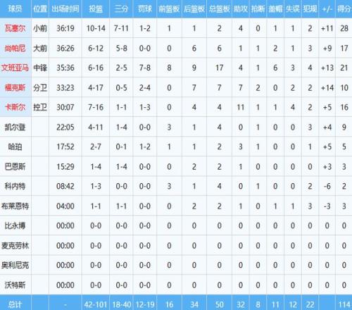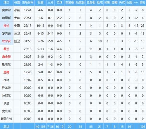 ÎİàÑÇÂí£¨23½ì×´Ôª£©·ÀÊØ¶ËÓ°ÏìÁ¦¾Þ´ó£¬ÂÅ´ÎÈÃ21½ì×´Ôª¿²Äþ°²³Ô±ñ£¬ºóÕßÈ«³¡³öÊÖ26´Î½öÖÐ5ÇòµÃµ½16·Ö6°å10Öú2¶Ï3ñ£¬Õý¸ºÖµ-18È«¶Ó×îµÍ¡£