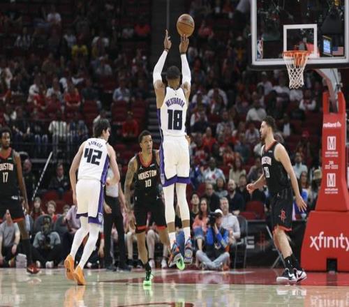 北京时间2月26日,NBA常规赛继续展开,火箭对阵国王。比赛开始后威少率先拿分,之后也是展现出很好的状态,国王完全就是靠着他在得分,火箭则多点开花,早早将分差拉开,首节取得33-22领先;次节谢泼德连续命中三分,将分差进一步拉开,杜兰特外线也进,国王完全跟不上节奏,半场火箭77-50领先。