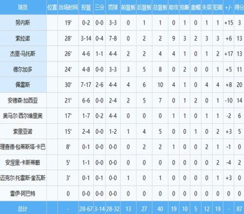 多米尼加男篮数据如下: