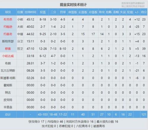 亚历山大加时赛没打,雷霆防守反击连连得手。最后半分钟,雷霆121-112领先到9分,穆雷连中3记三分。雷霆没有犯错,掘金无力回天。全场结束,雷霆127-121击败掘金。亚历山大36分3板9助2断2帽、霍姆格伦15分21板3帽。