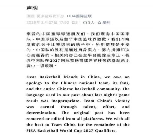 FIBA×îÖÕɾÌû¡¢Ë«ÓïµÀǸ£¬InstagramÆÀÂÛÇøÍ¬²½·¢Éù¡£³ÏÒâÓУ¬µ«É˺¦Òѳɡ£ÇòÃÔÒªµÄ²»ÊÇʺ󲹾ȣ¬ÊÇÈüǰµÄ×ðÖØ£¬ÊDzÃÅÐϯÉϵĹ«Æ½¡£