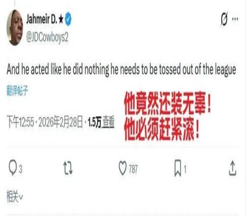 装无辜还下黑手!网友让他滚出NBA!
