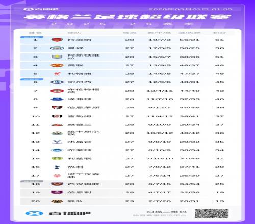 体育播报03月01日宣 英超第28轮,利物浦5-2大胜西汉姆联,伯恩利0-3落后连扳三球+第98分钟绝平被吹,3-4不敌布伦特福德,即将遭遇魔鬼赛程的纽卡2-3不敌埃弗顿。目前积分榜上,利物浦先赛积分追平曼联,位列第5,西汉姆联、伯恩利、狼队仍处降级区。