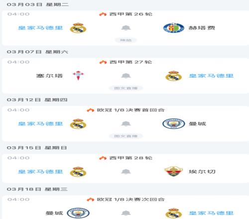 皇马后续赛程:
