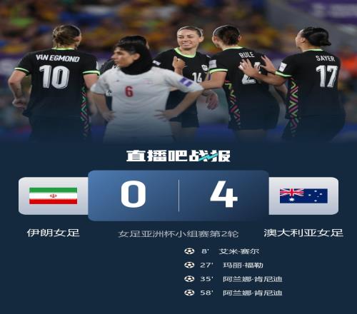 ÌåÓý²¥±¨3ÔÂ5ÈÕÐû °Ä´óÀûÑÇÅ®×ãÔÚ¸Õ¸Õ½áÊøµÄÑÇÖÞ±±ÈÈüÖÐ4-0սʤÁËÒÁÀÊÅ®×㣬ĿǰÔݾÓA×éµÚ¶þ¡£