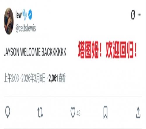 北京时间3月6日,塔图姆真的要回来了!名记Shams报道称,这位绿军球星计划将在周六对阵独行侠的比赛中迎来赛季首...