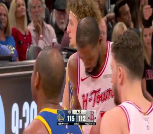 比赛开始,勇士反客为主率先发力,内外开花占据场上主动,申京攻防两端表现不佳,杜兰特连续单打止住颓势,勇士越战越勇逐渐将优势扩大到两位数,次节勇士命中率下降,奥科吉和杜兰特相继飙中三分帮助火箭打出12-2的攻击波扳平比分,桑托斯连续追打谢泼德稳住局势,半场战罢火箭47-51落后勇士。易边再战,勇士占得先机再获两位数领先,火箭外线开炮连中3记三分完成反超,末节两队依旧打得难解难分,关键时刻梅尔顿和霍福德相继飙中三分,申京独得7分给出回应,杜兰特被吹犯规火箭挑战成功,两队常规时间均未能完成绝杀,双方进入加时。加时赛,谢泼德和克赖尔对飙三分,波杰姆斯基连得5分率队确立优势,杜兰特连投带罚拿到5分续命,但也连续错失关键罚球,梅尔顿补篮得手,时间仅剩0.1秒时追梦发球送给杜兰特!最终,勇士加时115-113力克火箭,客场过关。