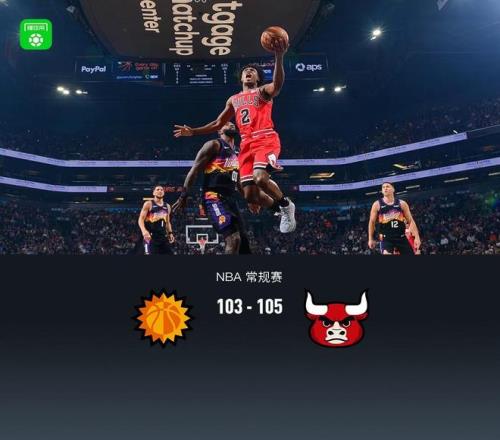 第四节太阳科费拿下9分,公牛亚布塞莱拿下7分,最终太阳103-105不敌公牛