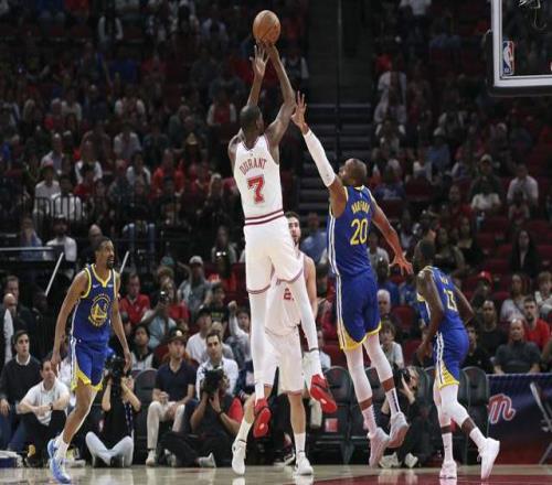 上半场火箭进攻状态低迷,三分线外17中5,也让他们陷入被动,面对残阵勇士未能早早占据主动。这次谢泼德替补发挥依然出色,8中5拿到11分3助攻;杜兰特8中4拿到10分,阿门8分6篮板。