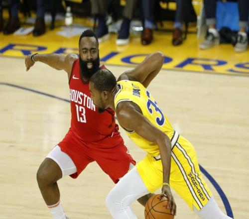 决胜时刻,杜兰特抢断格林发动快攻,却被霍福德飞身封盖;随后获得两次罚球机会,却接连失准,两罚不中——这一幕成为比赛转折点,也令火箭错失扳平良机。