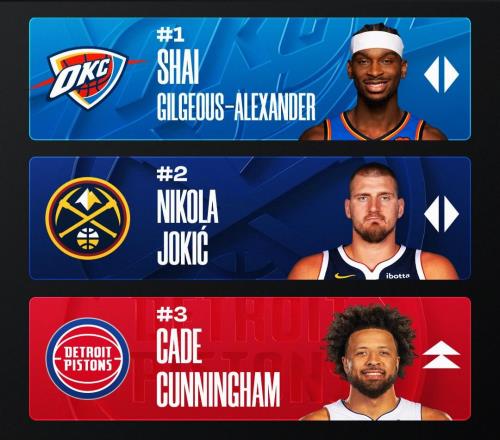 体育播报03月06日宣 NBA官方公布最新一期的常规赛MVP榜单,其中SGA约基奇坎宁安文班前四不变,杰伦·布朗将东契奇挤出前五。
