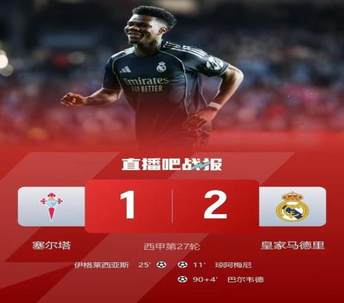 北京时间3月7日凌晨,2025/26赛季西甲联赛第27轮上演一场焦点战。排名第2的皇马客场2-1击败塞尔塔终结了联赛2...
