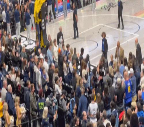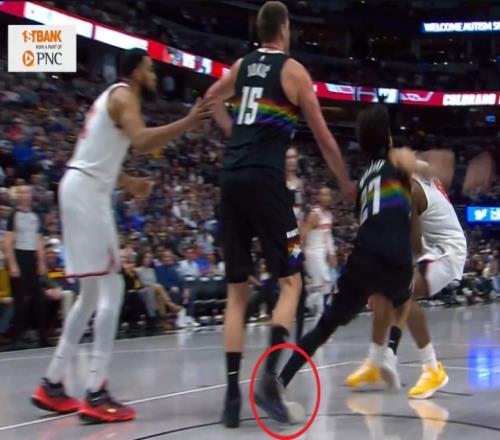 次节末,掘金后卫穆雷防守沉退时左脚不慎踩到队友约基奇,左脚踝向外侧翻连续扭伤。随后穆雷捂着脚踝痛苦倒地,现已回到更衣室。