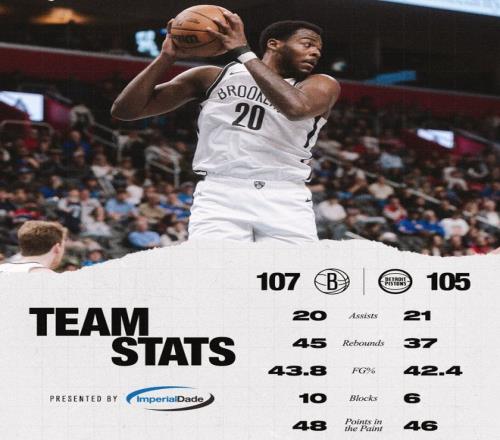 2.活塞在领先23分的情况下被东部倒数第二的篮网逆转;