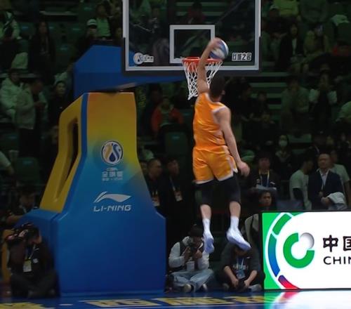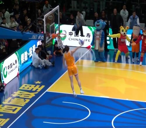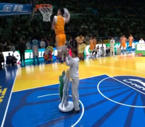 ÕŶ¦ÑÒ³ö³¡£¬¹¤×÷ÈËԱͷ¶¥ÄÃÇò£¬ÕŶ¦ÑÒ·ÉÔ¾²¢¶áÇòÍê³É·ç³µ¿ÛÀº£¬»ñµÃ50·Ö¡£