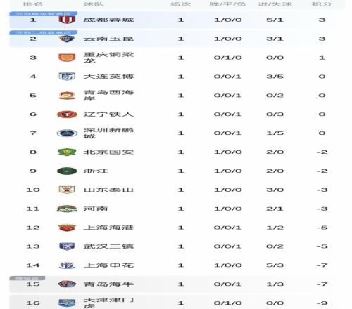 在中超积分榜上,蓉城、玉昆同积3分领跑,蓉城以净胜球优势排名榜首位置,津门虎负9分垫底。国安赢球后,泰山排名下滑。在下轮比赛中,泰山将在主场大战国安,去年泰山在奥体以6-0狂胜国安,客场1-6输球。2支中超老牌强队再次交手,大家说最终会踢出什么样的比分呢?