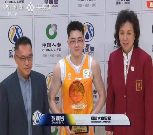 俞泽辰的动作是助跑后半转体背扣,虽然也是一次成功,不过视觉方面不如张鼎言飞跃徐昕那么震撼,最终获得了45分。这样的话,张鼎言以三次满分扣篮的成绩,夺得了本届扣篮大赛的冠军。