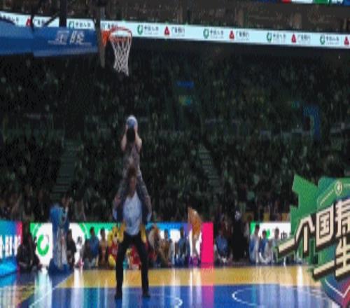 球迷最爱看的扣篮大赛。刘礼嘉第一扣的动作是接队友打板传球,然后空接大风车暴扣。可惜的是刘礼嘉并没有在规定时间里完成这个动作,最终只是完成了打板接球后的折叠扣篮,拿到了41分。